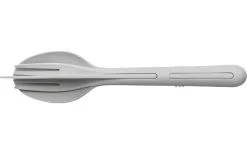 Das perfekte Besteck für draußen und unterwegs, in ordentlicher Größe! Messer, Gabel und Löffel lassen sich ineinanderstecken – zum Lösen einfach das Messer an der Spitze anheben und nach unten herausziehen. Liegt gut in der Hand und passt mit seinem Leichtgewicht wirklich in jede Tasche. Wiederverwendbar.
