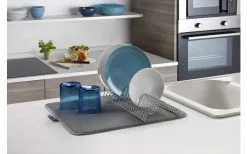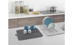 Dry-Tex Lava Spülkorb mit Microfaser Abtropfmatte. Mit exklusiver Metaltex-TouchTherm-Beschichtung. Microfaser-Matte für schonendes Trocknen von Glas-oder Porzellanwaren. Lässt sich nach Gebrauch einfach auswringen. Modernes Design im aktuellen „Industrial Look“.