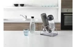 Abtropfgestell für mehrere Flaschen und Deckel auf einmal zu trocknen, dazu ein Mikrofasermatte mit dabei.