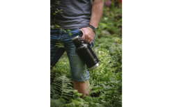Doppelwandige Edelstahl Thermoskanne mit großer Einfüllöffnung und robustem Kunststoff Handgriff.