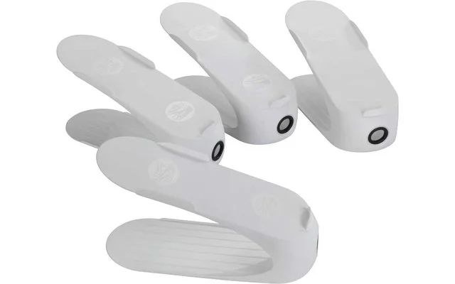 Mehr Platz und Ordnung im Schuhschrank gesucht? Der clevere Schuhhalter bietet 50 % mehr Platz im Schuhschrank. Die Schuhe werden ganz einfach paarweise übereinander gestapelt und vor Druckstellen und Kratzern geschützt. Der Schuhhalter besteht aus stabilem Kunststoff in klassischem Weiß und ist mit einem praktischen, grauen Griffloch für leichtes Entnehmen ausgestattet. Die Lieferung enthält 4 Schuhalter.